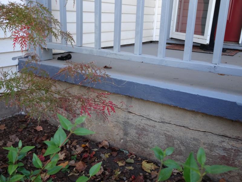 9 FEET LONG HORIZONTAL CRACK IN CONCRETE FOUNDATION. (PORCH)